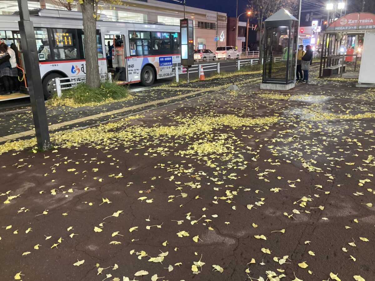 2025年11月13日 / 最終更新日時 : 2025年11月13日 いーハコスタッフ 日常 一気に落葉しましたね 美原に用事があってバスから降りたら見事に黄色くなったイチョウの葉が地面に。そういえば、午前中風が強くて嵐のようだったものね。 これも18時頃の風景ですっかり夜ですね。日が短くなるのが早いなあ。すでに11月も半ばに差し掛かっていて、きっと次に気がついたら年末DA。 歳を重ねるごとに月日の流れが加速して、なんだか不思議な気分ですね。小学生の頃など、あんなに夏休みと冬休みの間が長く感じていたのに。あの当時の学校の先生たちも同じように、時の過ぎる速さに頭を抱えていたのでしょうか。