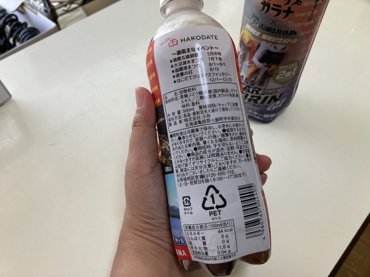 カロリーと炭水化物が「オールスター競輪ガラナ」の方が数字が大きいということは、ガラナエキスをたくさん入れたから砂糖もたくさん入れたってことなんでしょうか…わからん。食塩相当量も微増。わからん。