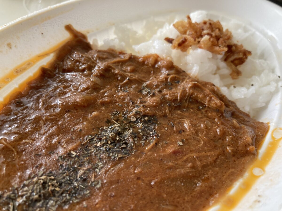 ほろほろに煮込まれたチキンのほぐし身がたっぷりはいっていて、辛さ控えめで旨味とコクが強い好みのカレーライスでした。なかなかお店にたどり着くまでに紆余曲折、縁遠いお店だったのですが、ずっと食べたかったので今回近所に出店してくださっていてラッキーでした!