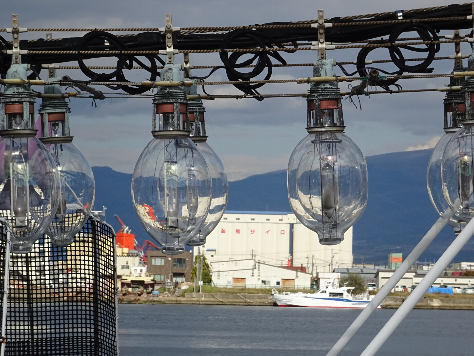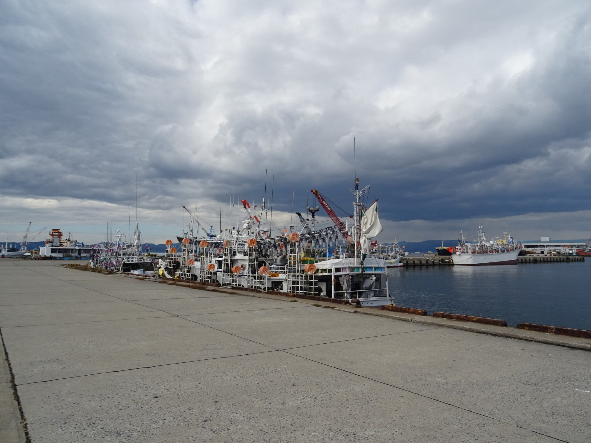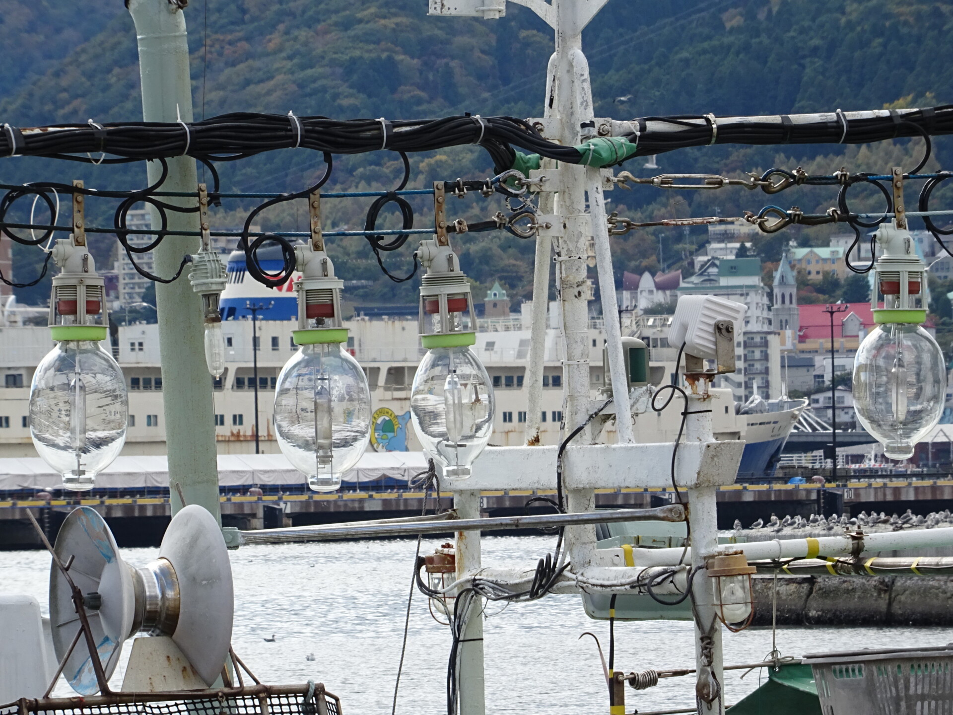 イカ釣り漁船、函館・中央ふ頭にて
