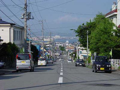 大三坂を登り切ったところからはじまる急な坂道。函館山山頂に向かって左側には聖ヨハネ教会が、右側にはハリストス正教会と2つの異なる宗教の教会にはさまれている。