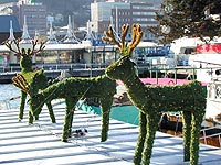 トナカイです。昨日の点灯式以来、大クリスマスツリーの傍らで、道行く人々を楽しませることに一役かってます。