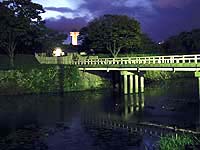 いつもはジョギングしている人も多い五稜郭公園の外堀も、今日はひっそり。