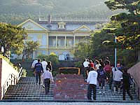 バスから団体さんが降りてきました。