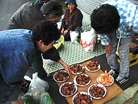こちら中島廉売で、キノコを売っているお母さんたち。