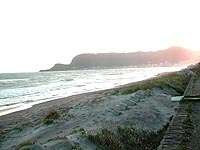 夏の陽射しとは打って変わって、寂しげな雰囲気の海岸。