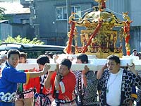 仕事をしていたら外から「ワッショイ!」の掛け声が聞こえてきた。慌てて事務所を飛び出しておみこしを追いかけダッシュ!今日は豊川神社のお祭りで、子供から大人までおみこしを担いで十字街付近を練り歩いてました。
