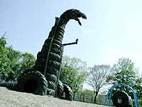 そんなことじゃなく、この方、古タイヤで作られた怪獣さんです。田家町にある公園の中にいらっしゃいます。