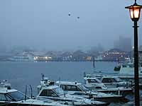 今日は4月中旬の暖かさで、日中は10度と気温も高め。そのせいか、夕方には西部地区一帯に霧がたちこめ、なんだか怪しい雰囲気。