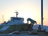 夕方のフェリー乗り場。海を渡って、どこか遠くへ走ってゆきたい。