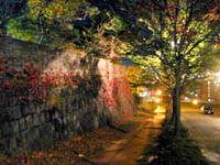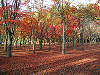には落ち葉の赤いじゅうたん。