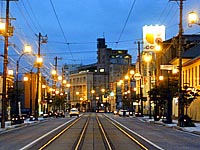 十字街の通りの街灯はオレンジ色。夕闇が迫ってくると独得の雰囲気が。十字街はこれから変わりはじめます。