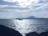 傾きかけた西日でキラキラと輝く海