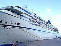 西部地区をウロウロしていたら、タイタニックばりの船を発見! おおっ!なんだあのデカさは!?と、近づいてみると一度は乗ってみたい豪華客船「飛鳥」ではありませんか〜。