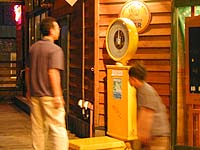 魚の重さを量る時に使われる測量計でお互いの体重を量り合っていた親子。二人一緒に乗れるほど大きいのだ!